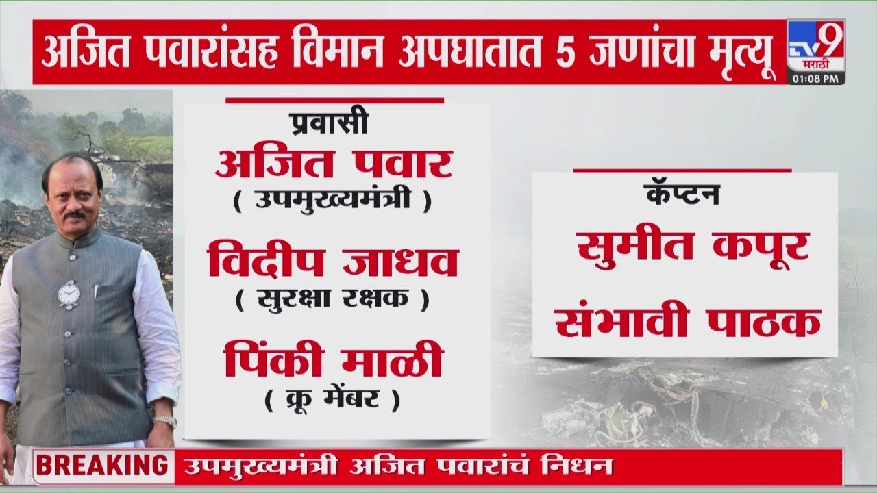 Breaking News:अजित पवार यांचा दुर्दैवी विमान अपघातात मृत्यू नंतर सुनेत्रा पवार घेणार उपमुख्यमंत्री पदाची शपथ महाराष्ट्राचे उपमुख्यमंत्री अजित पवार यांचा 28 जानेवारी 2026 रोजी बारामतीजवळ एका चार्टर्ड विमान अपघातात दुर्दैवी निधन झाले. विमान बारामती विमानतळावर लँडिंगकाळात कोसळले आणि त्यात पवारांसह अन्य चार जणांचा मृत्यू झाला. त्यांच्या निधनामुळे राज्यात शोककळा पसरली असून राजकीय वर्तुळात मोठी पोकळी … Read more